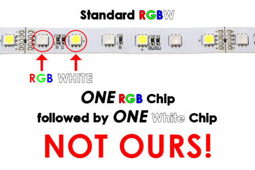 - 4 in 1 LED Chip as opposed to Standard alternating RGB and White LED Chips